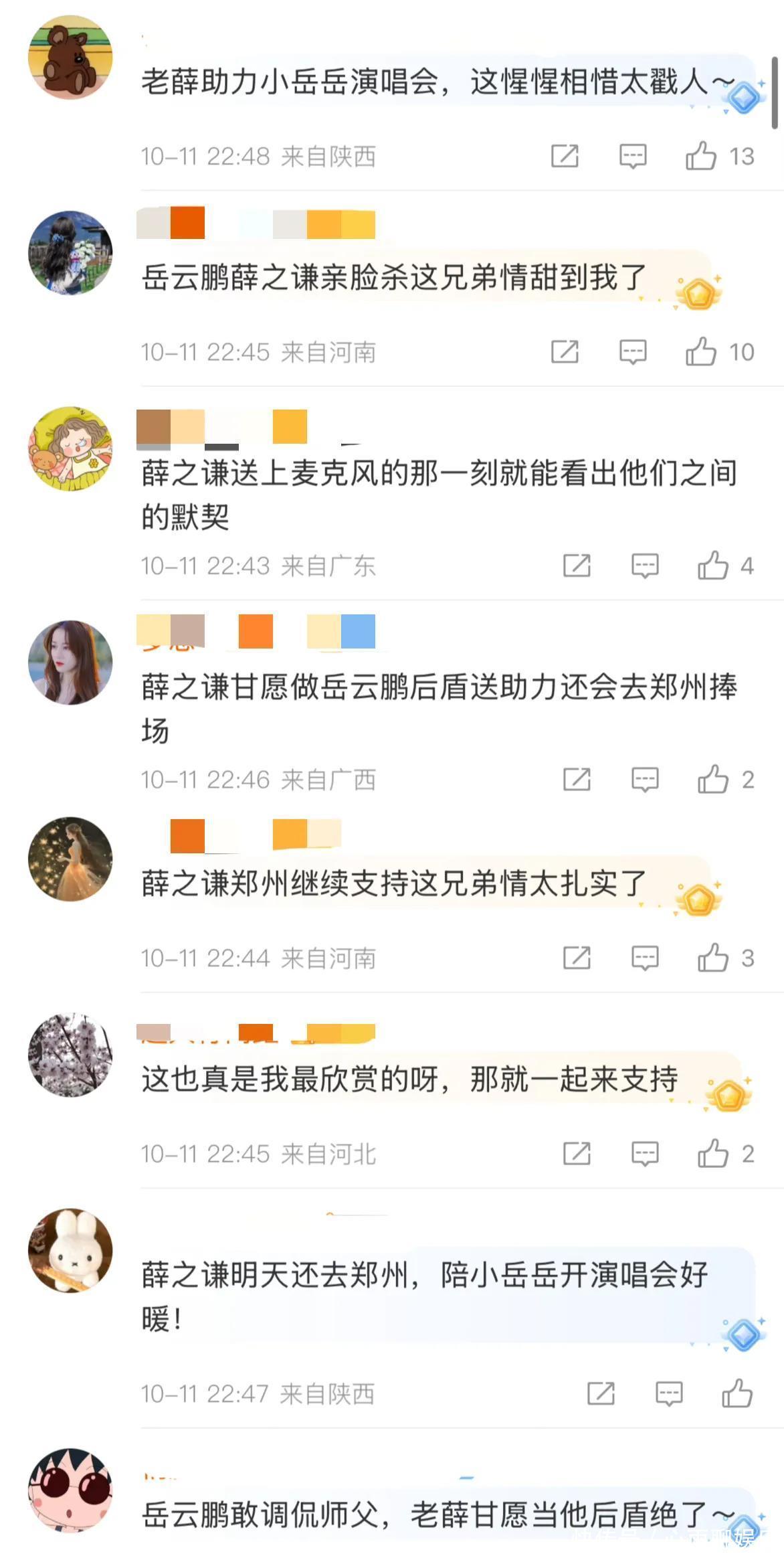 有人说“这哪是兄弟情啊,比偶像剧里的互动还甜,俩人也太可爱了”; 还有人感慨“在娱乐圈能处12年,还这么真心,互相扶持不踩对方,这才是真友谊吧”; 甚至有人调侃“岳云鹏胆子真大,就不怕谦谦粉丝‘打’你吗?”八卦娱:其实大家喜欢看他俩互动,不只是因为搞笑,更是羡慕这份在娱乐圈里难得的真心。12年过去,俩人从默默无闻到各自发光,却没忘了互相搭把手,一个敢疯闹,一个愿配合,这样的神仙友谊,谁看了不羡慕?#岳云鹏薛之谦演唱会亲脸杀# #岳云鹏薛之谦 12年友情# #娱乐圈真友谊范本# #演唱会名场面 笑翻全场#