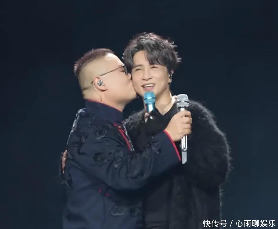 薛之谦够意思,连续两场都来撑岳云鹏的演唱会,上台后还跟他插科打诨,俩人互怼的样子特别逗; 本来好好聊着天、唱着歌,岳云鹏不知道哪来的兴致,突然往前凑,“吧唧”一下亲在了薛之谦脸颊上;